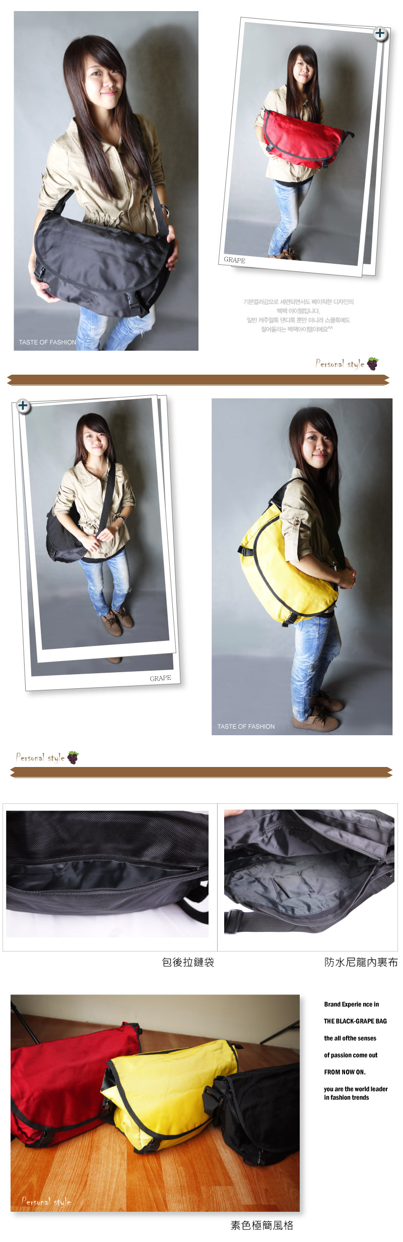 素色極簡風格/內容量大可放置a4紙/包背面1拉鍊袋/包內部1拉鍊夾層/防水尼龍內裏布 輕鬆簡單就能有型。店面價:750元 網路黑葡萄價格:280元 |