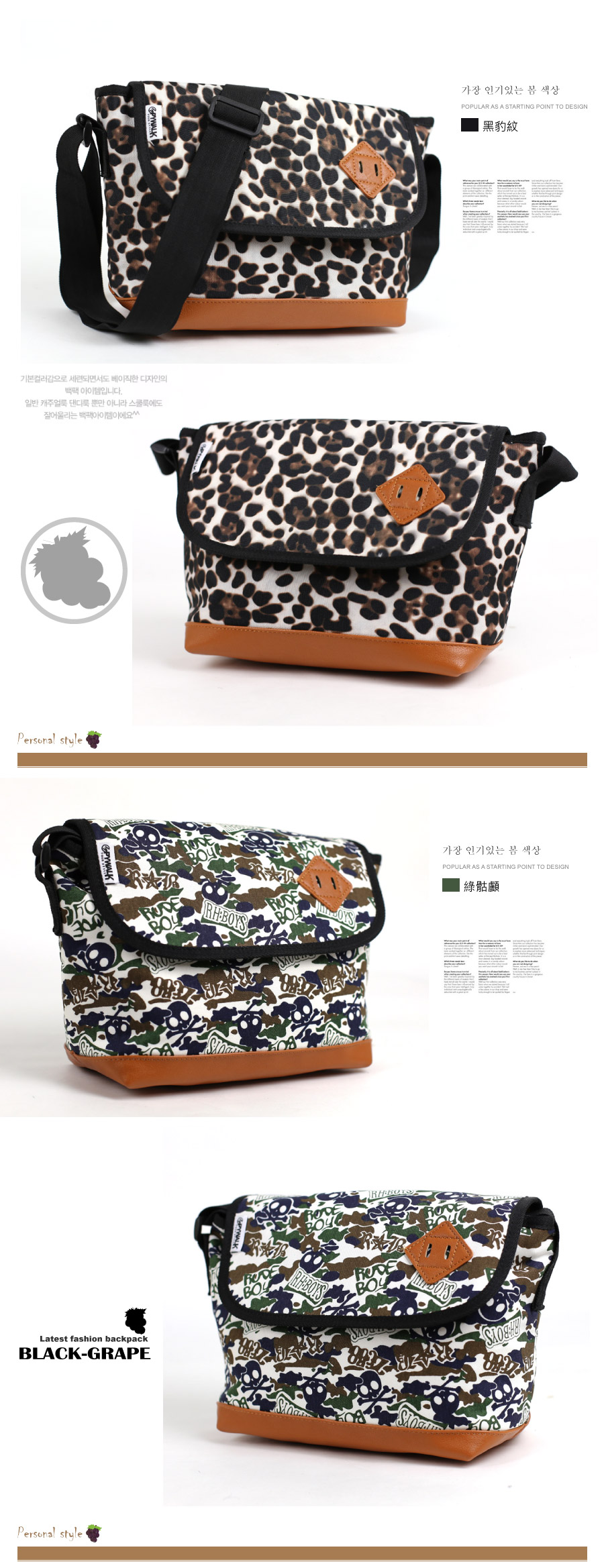 | 【AS2635-1】豹紋&綠骷顱《圖印質感隨身斜背包/側背包 |