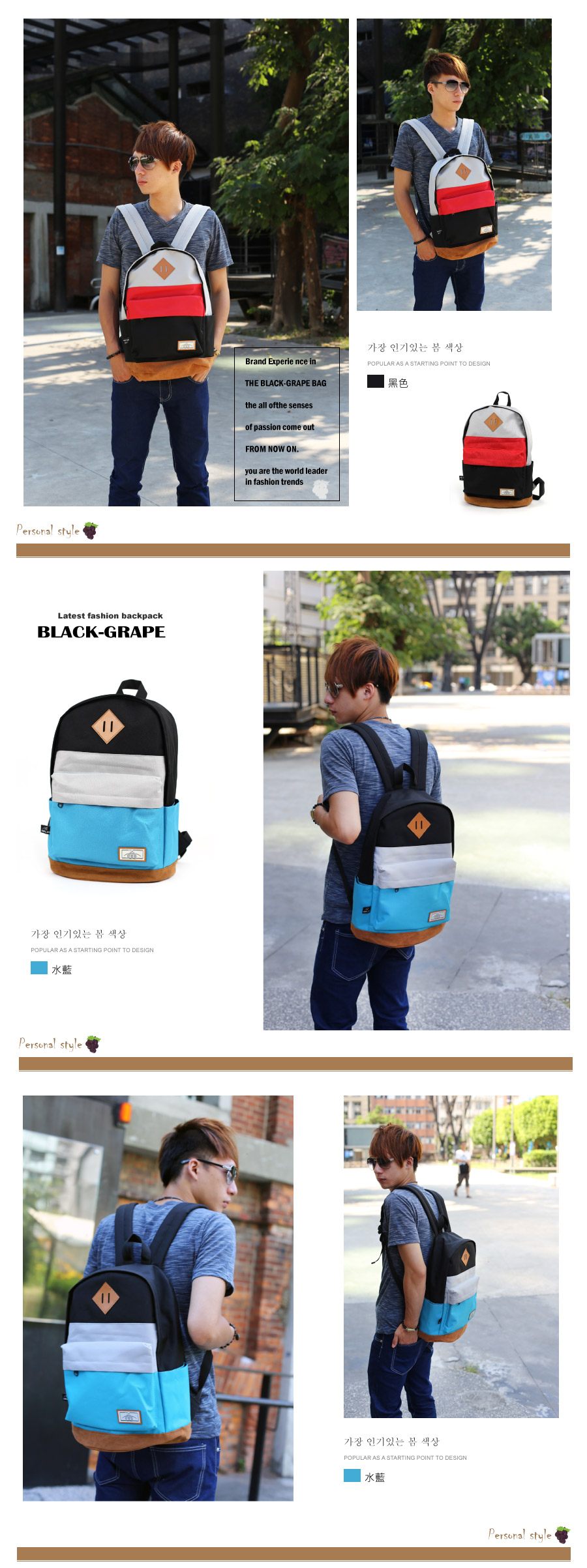 | 【L0064】韓國色拼接豬鼻後背包/筆電背包 |